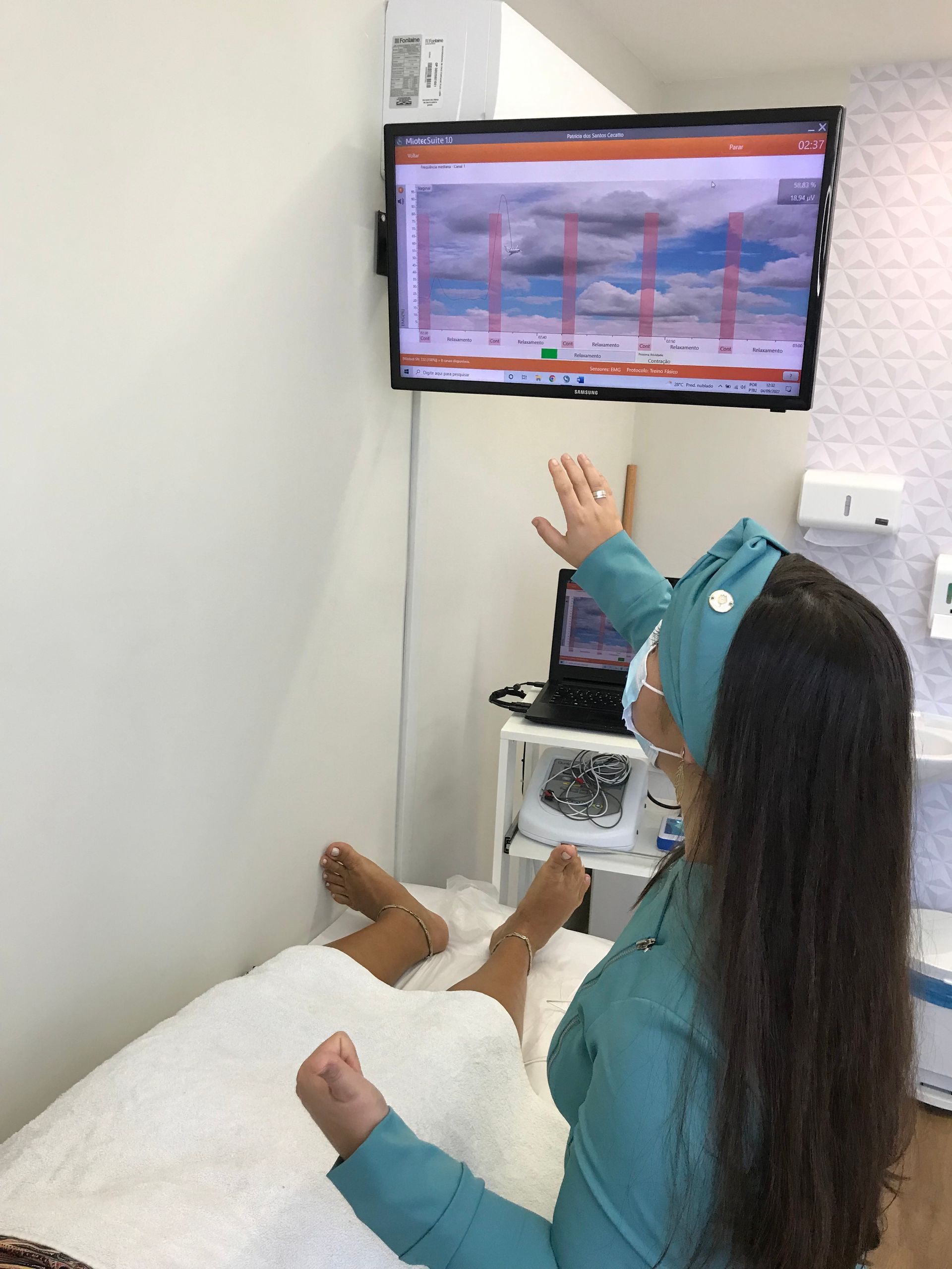 Reabilitação perineal com biofeedback, associada a técnicas de Cinesioterapia, Eletroestimulação e Laserterapia.