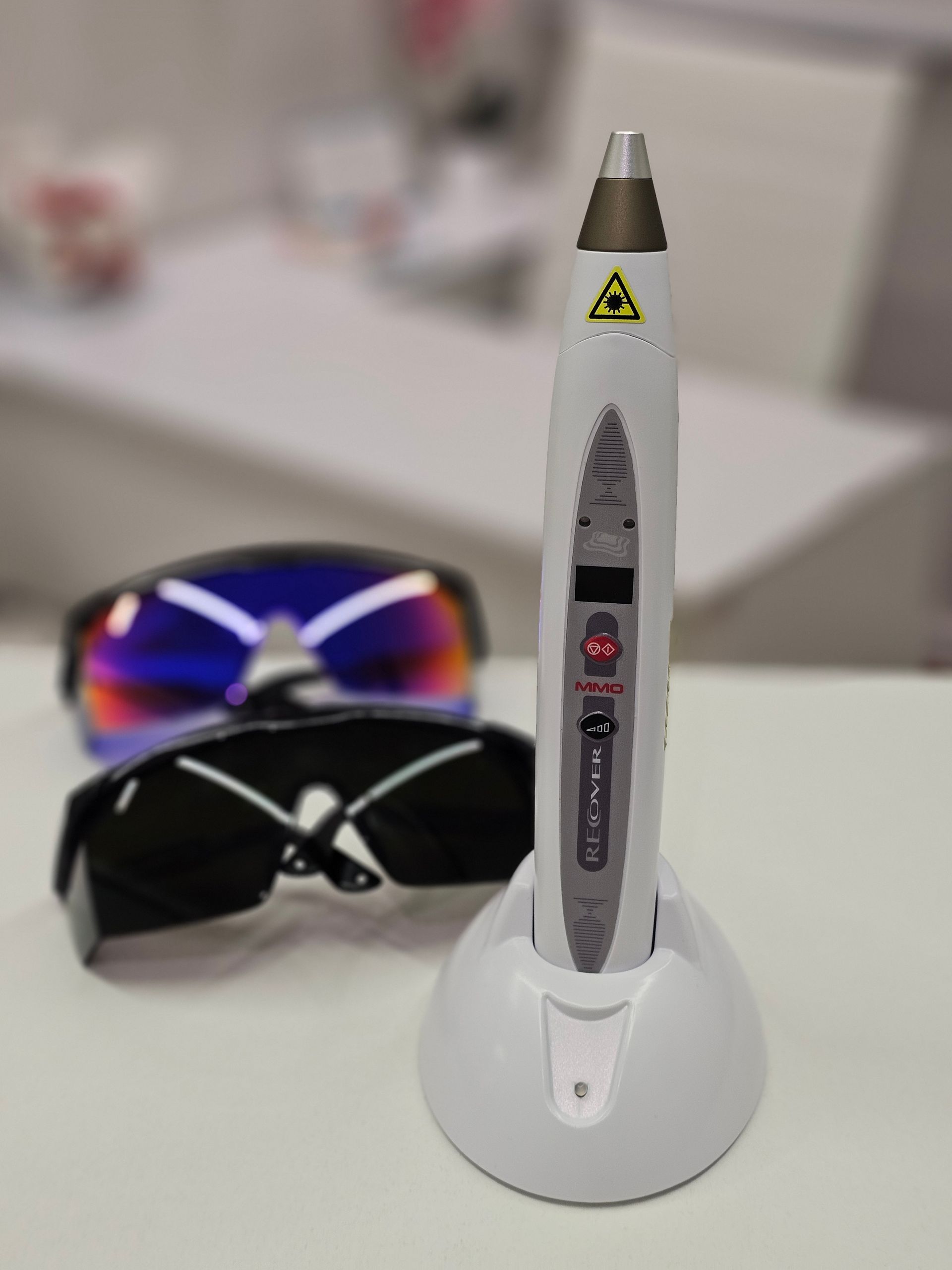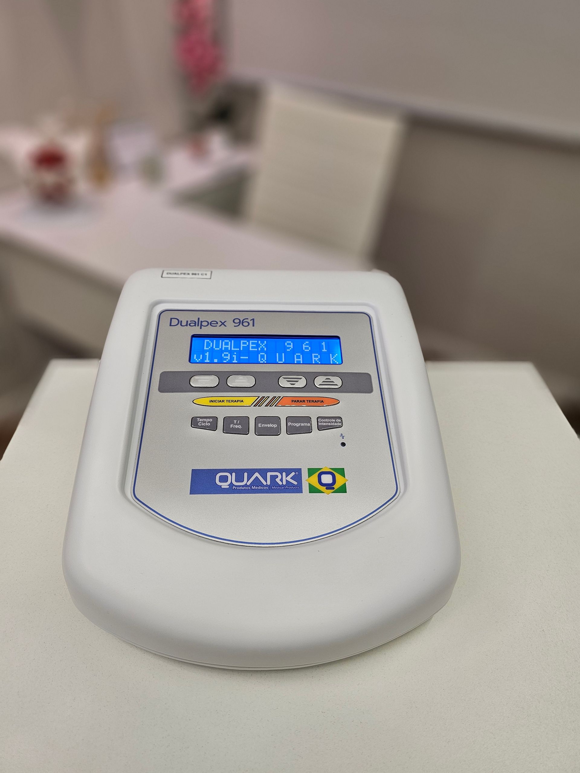 Reabilitação perineal com biofeedback, associada a técnicas de Cinesioterapia, Eletroestimulação e Laserterapia.